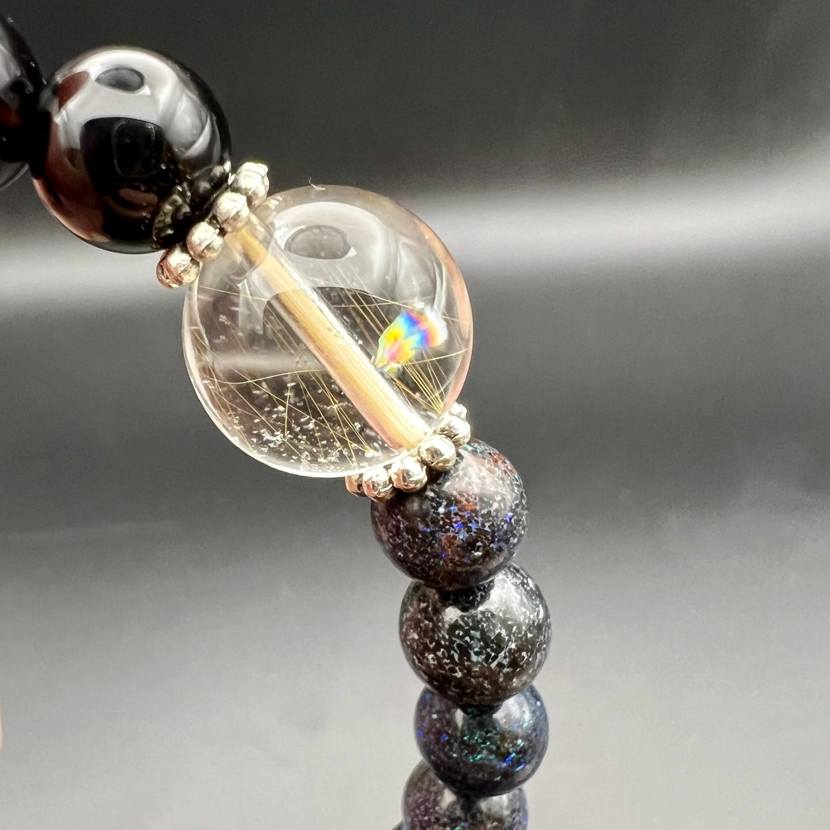 この2つを中心にグラウンディング(後述)と破邪効果を重視してルチルクォーツ(エンジェルヘア&スモーキー)をトップと裏トップに配置しました。