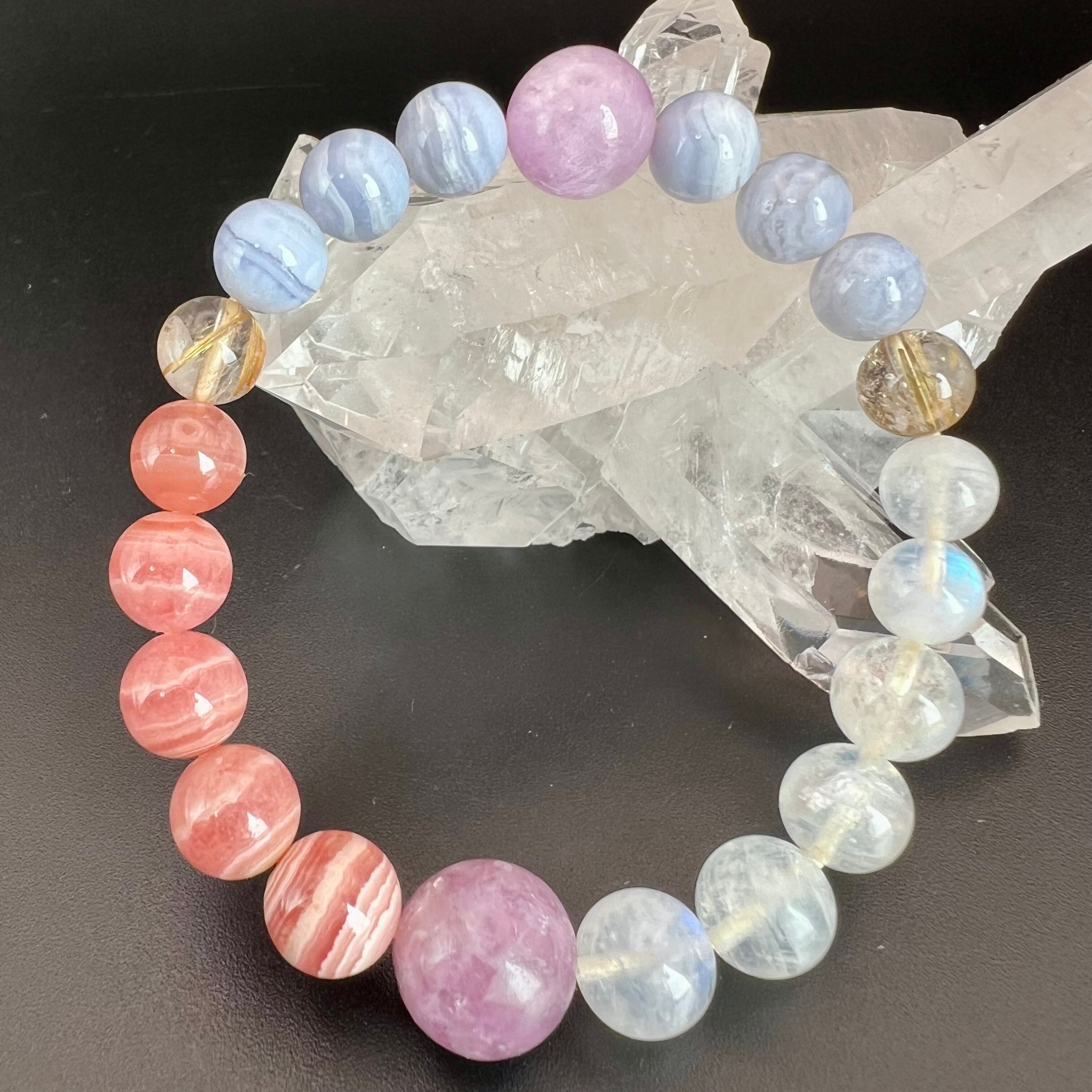 「対人関係と精神の安定」、「置かれた場所への適応力」、「回復力と修復力」を軸に、パワーストーンの波動が上手く組み合うように作っていますので、オンオフ問わず、枕元でも就寝中の着用でもお使いいただけます。