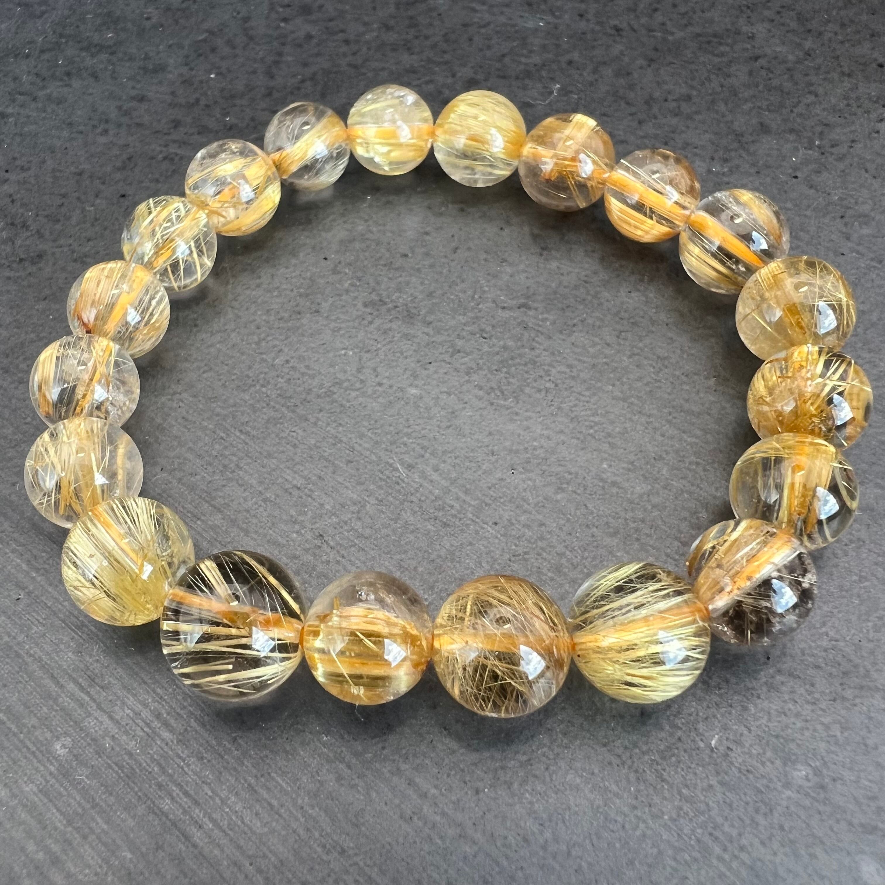 03)主にタイチンルチル系で高透明度。キャッツアイが見られる珠も。約9.0㍉の個体。