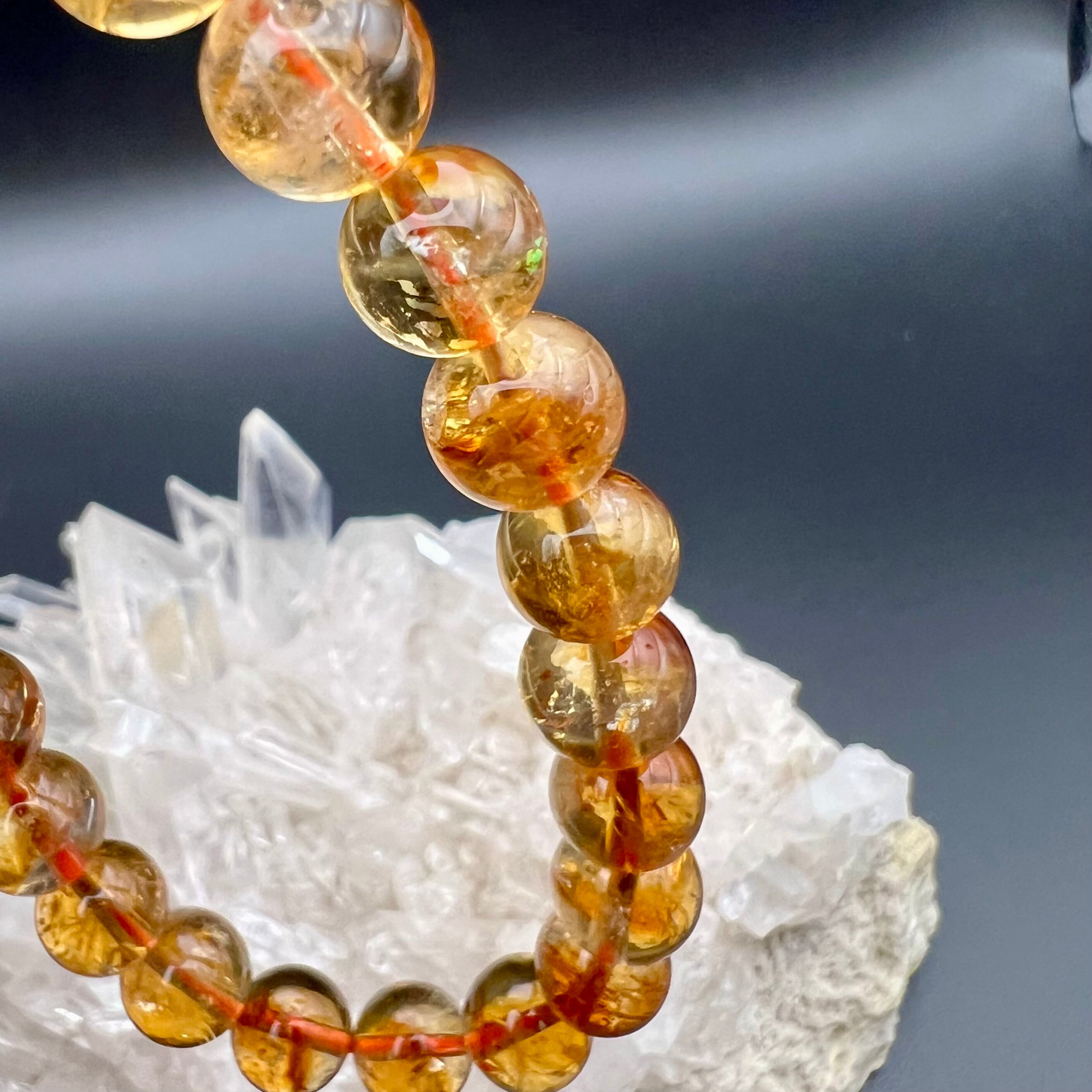 ファントムシトリンの中でも芳醇な発色、魅力的なファントムが形成されていて、アイリス(虹)がある珠も見受けられます。